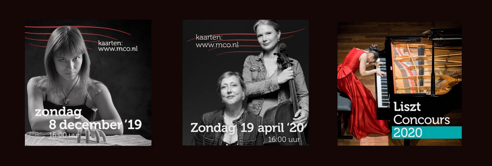 Voor de concertserie van het MCO maakte Jochem een aantal reclamespotjes. Hij koos treffende muziekfragmenten, een setje sprekende foto’s en een sierlijk element uit de huisstijl. Dit materiaal smeedde hij om tot vier aansprekende promo’s.