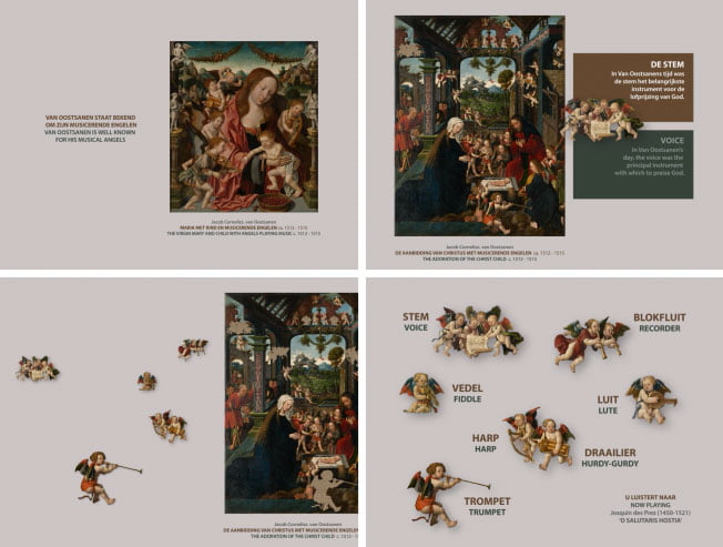 Inhoudelijk kwam het museum met twee duidelijk omlijnde ideeën. Daarnaast droeg Jochem twee eigen concepten aan. Dat resulteerde in de animaties ‘Musicerende Engelen’ en ‘Houtsneden: de techniek’.
