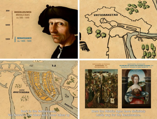 Het Stedelijk Museum Alkmaar vroeg Jochem om vier educatieve animaties voor een grote overzichtstentoonstelling getiteld ‘Van Oostsanen – De eerste Hollandse Meester’.